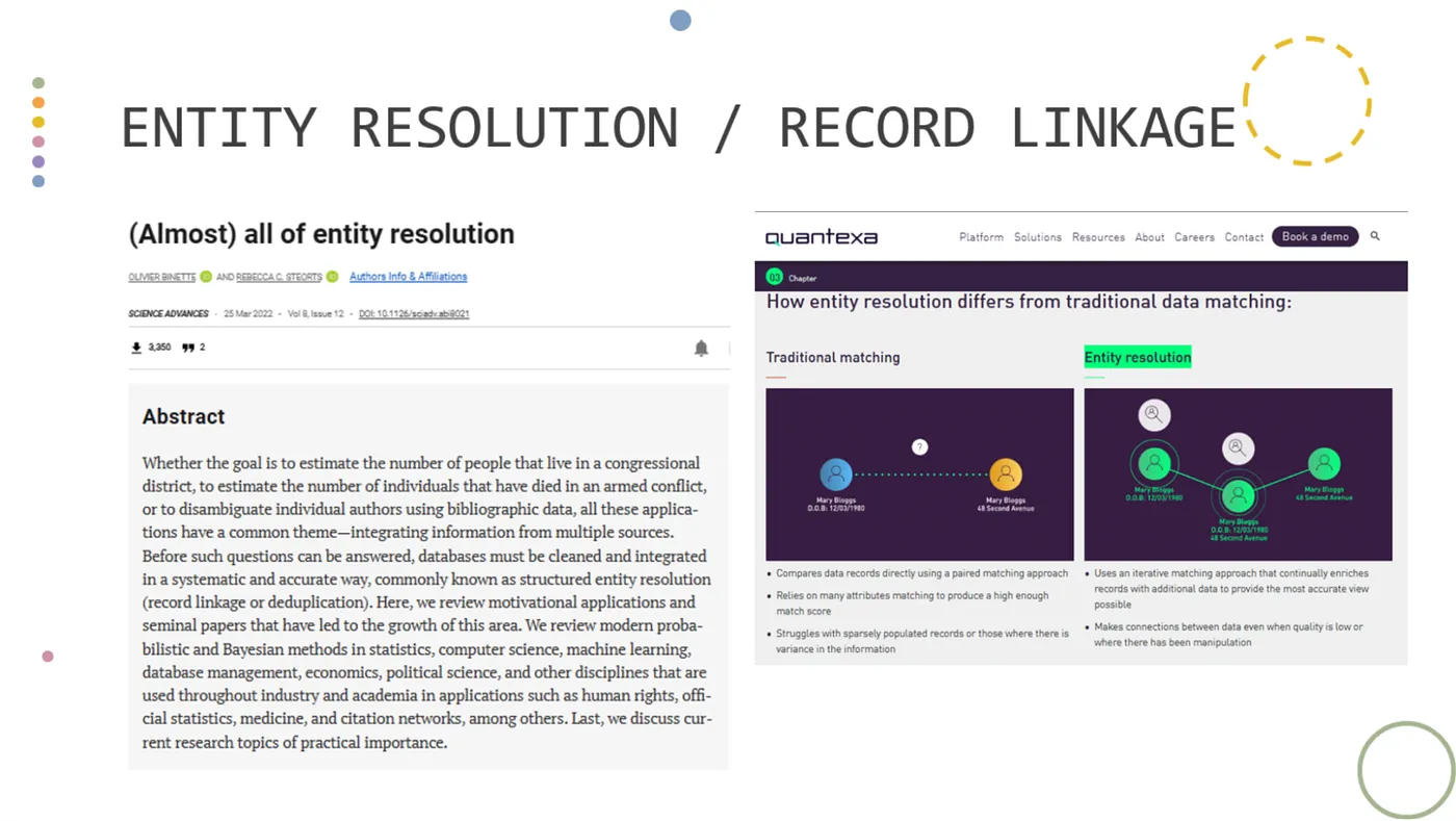 Introduction about entity resolution and record linkage — 圖片來源 — 講者投影片 [12]